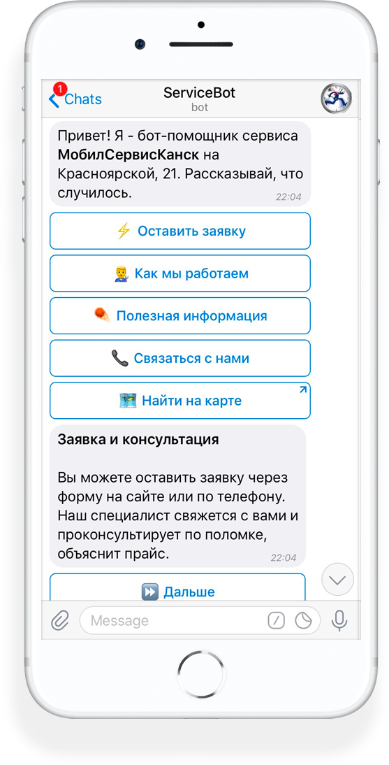 ✓ Есть возможность открыть карту с отмеченной точкой на ней - местонахождением СЦ
