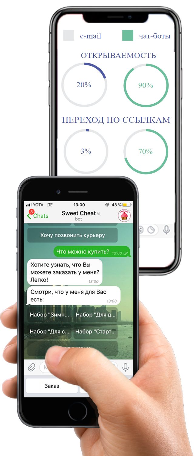 По статистике переходят по ссылкам в e-mail письмах 3%, а в чат ботах этот показатель достигает 70%
